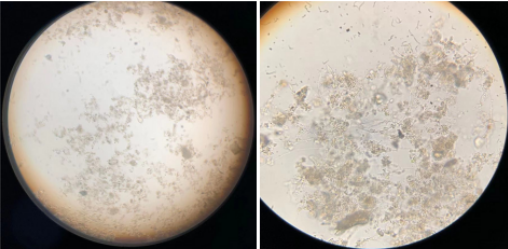(鏡檢污泥絮體細碎,可見少量輪蟲及表殼蟲,鐘蟲等原生動物較少 )
